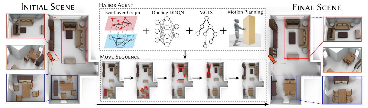 | | HAISOR: Human-aware Indoor Scene Optimization via Deep Reinforcement Learning